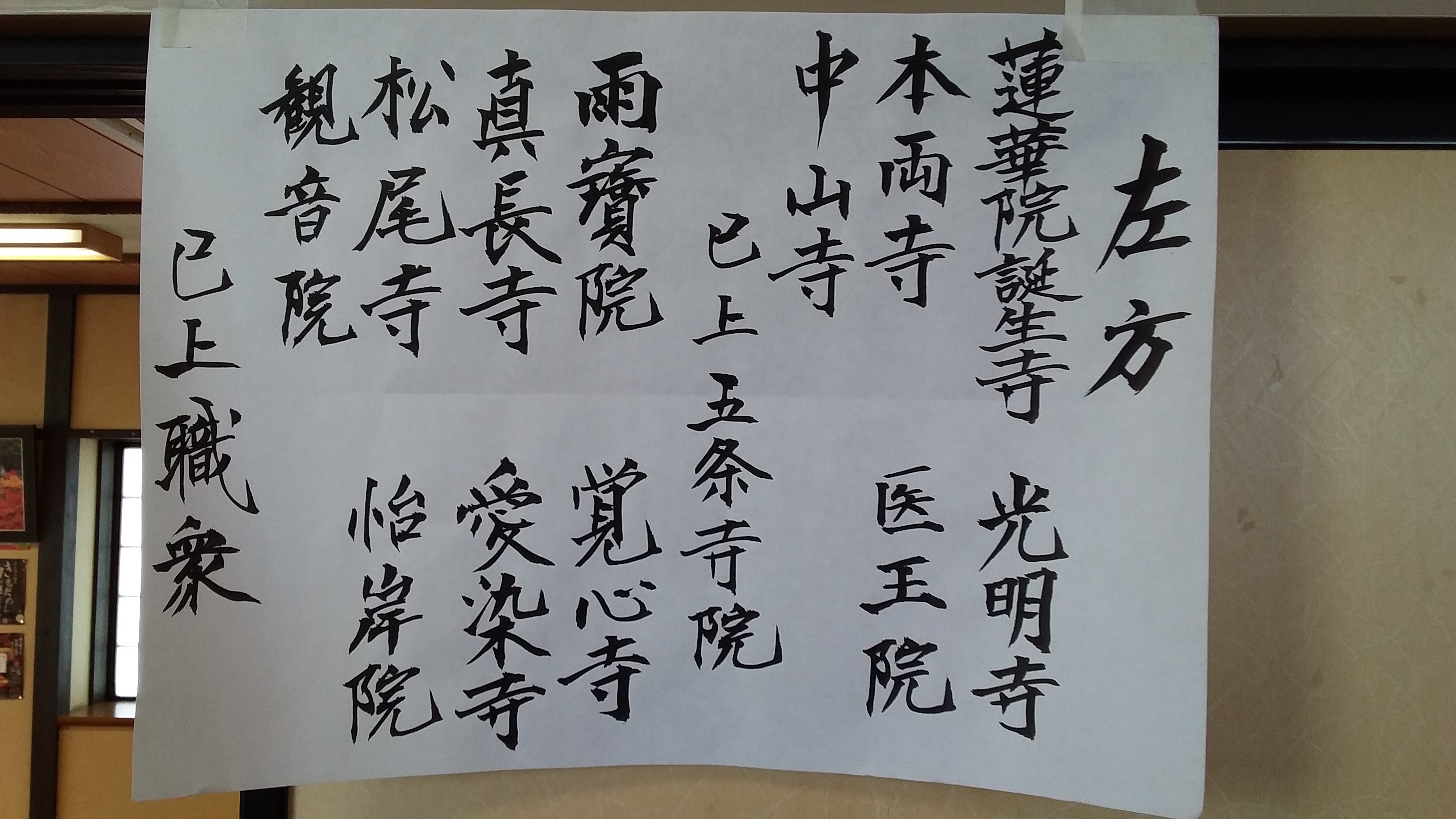 下写真は集会(しゅえ)所入り口に張り出された我々職衆(しきしゅう)寺院の名前です。
