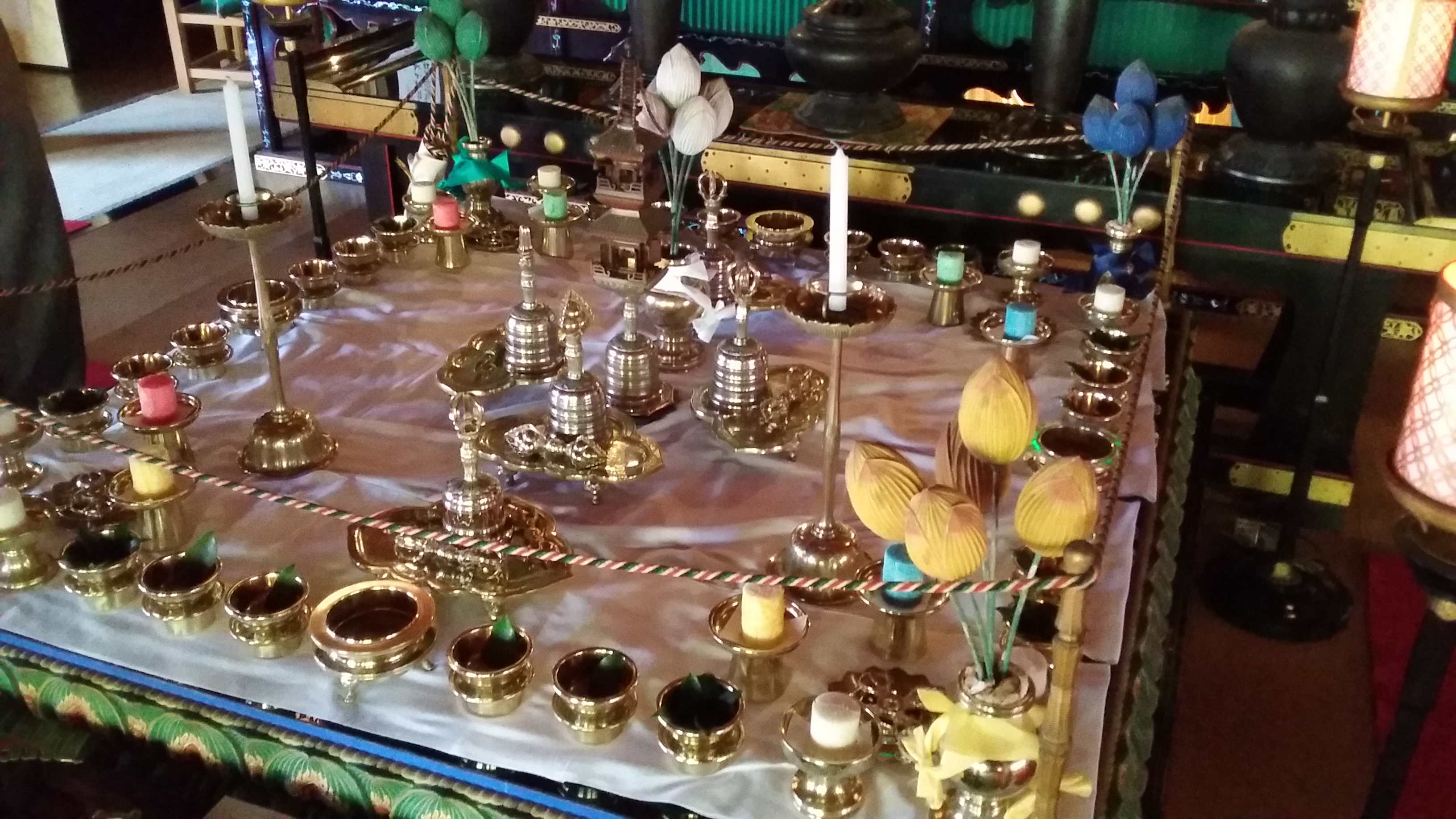 金堂大壇上のお飾り法具がところ狭しと並んでます。このお飾りが正式な飾り方ですね。