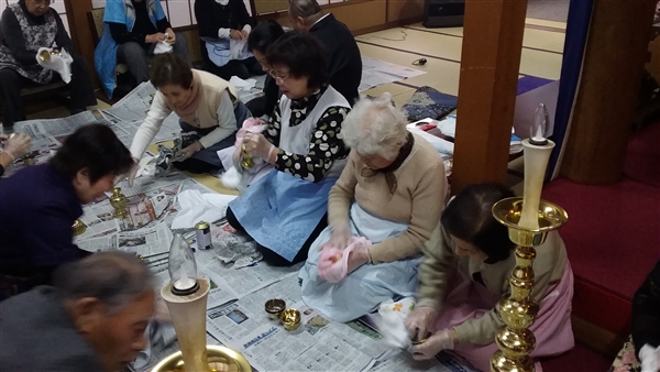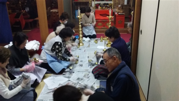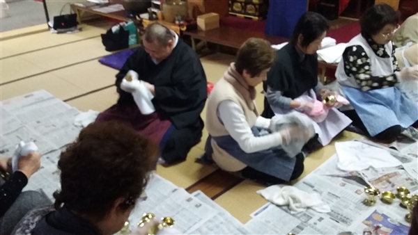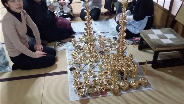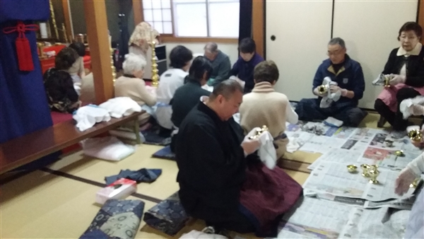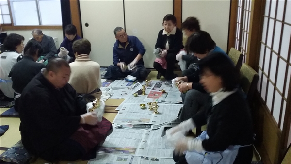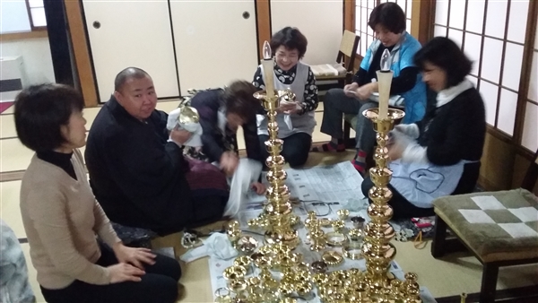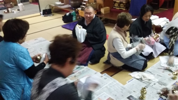 平成28年12月21日大師講の後に檀信徒の皆さんと一緒に佛器磨きを行いました。沢山の方々にお手伝いを頂き佛器を磨かせて頂き感謝です。これでお正月はピッカピカの佛器にて仏様にご供養を申し上げることが出来ます。改めてお手伝いを頂いた方々に御礼を申し上げます。