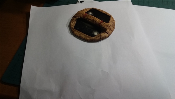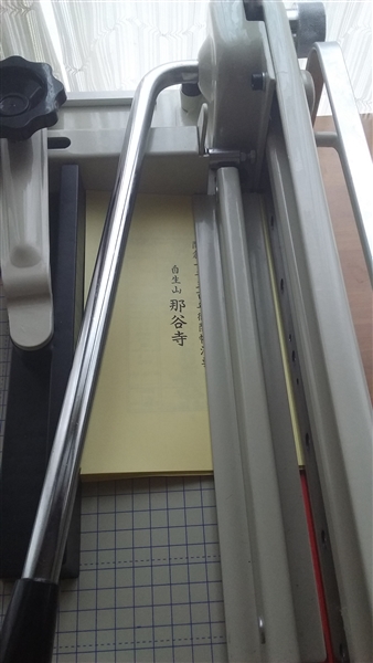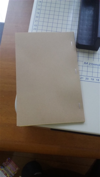 上記写真は小口をクリップにて挟みノド部をホッチキスで留める。